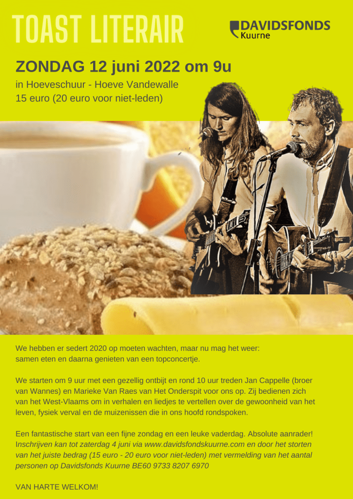 reserveer hier uw toast literair (ontbijt, muziek en verhalen) 15 euro